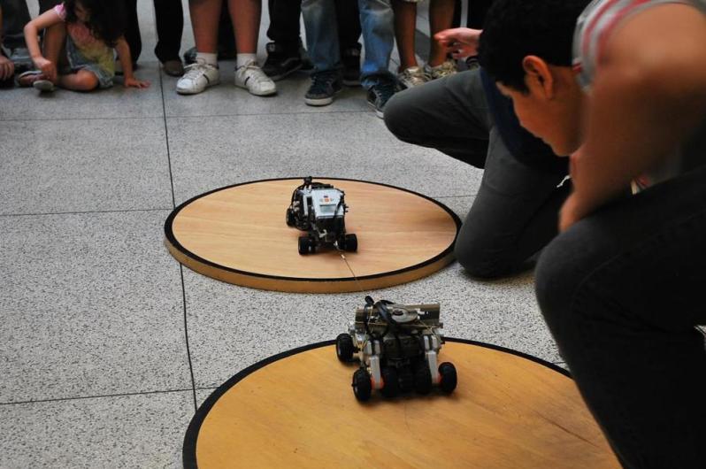 Characteristic of the Figure: A set of square banners with 80.0 cm sides containing a design of 0.02 m thick black lines that indicate the route.