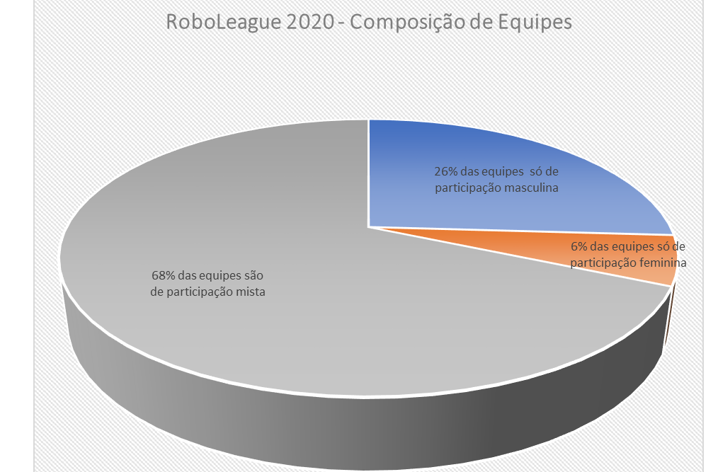 Em 2020, das equipes inscritas e com cadastro aprovado para receberem certificado de participação, foram identificadas 6 equipes compostas apenas de integrantes femininas, 27 equipes compostas apenas de integrantes masculinos e 71 equipes de composição mista. Estas equipes compunham-se, em média, de 3,08 integrantes por equipe. Ver abaixo: