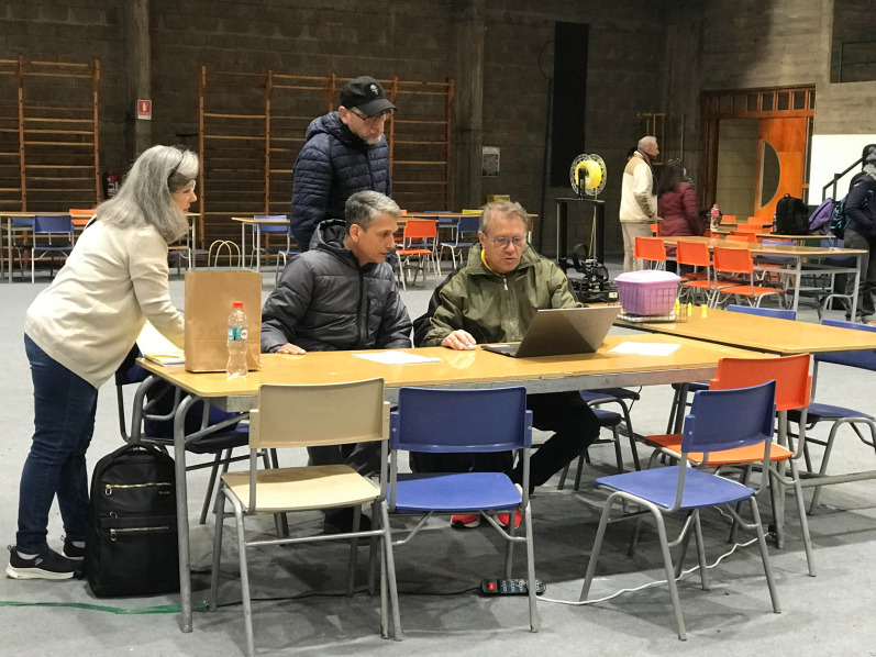 En la foto de Chile, de derecha a izquierda, el profesor Luís Rogério y la profesora Eliane presentan a los chilenos las competencias mexicanas.