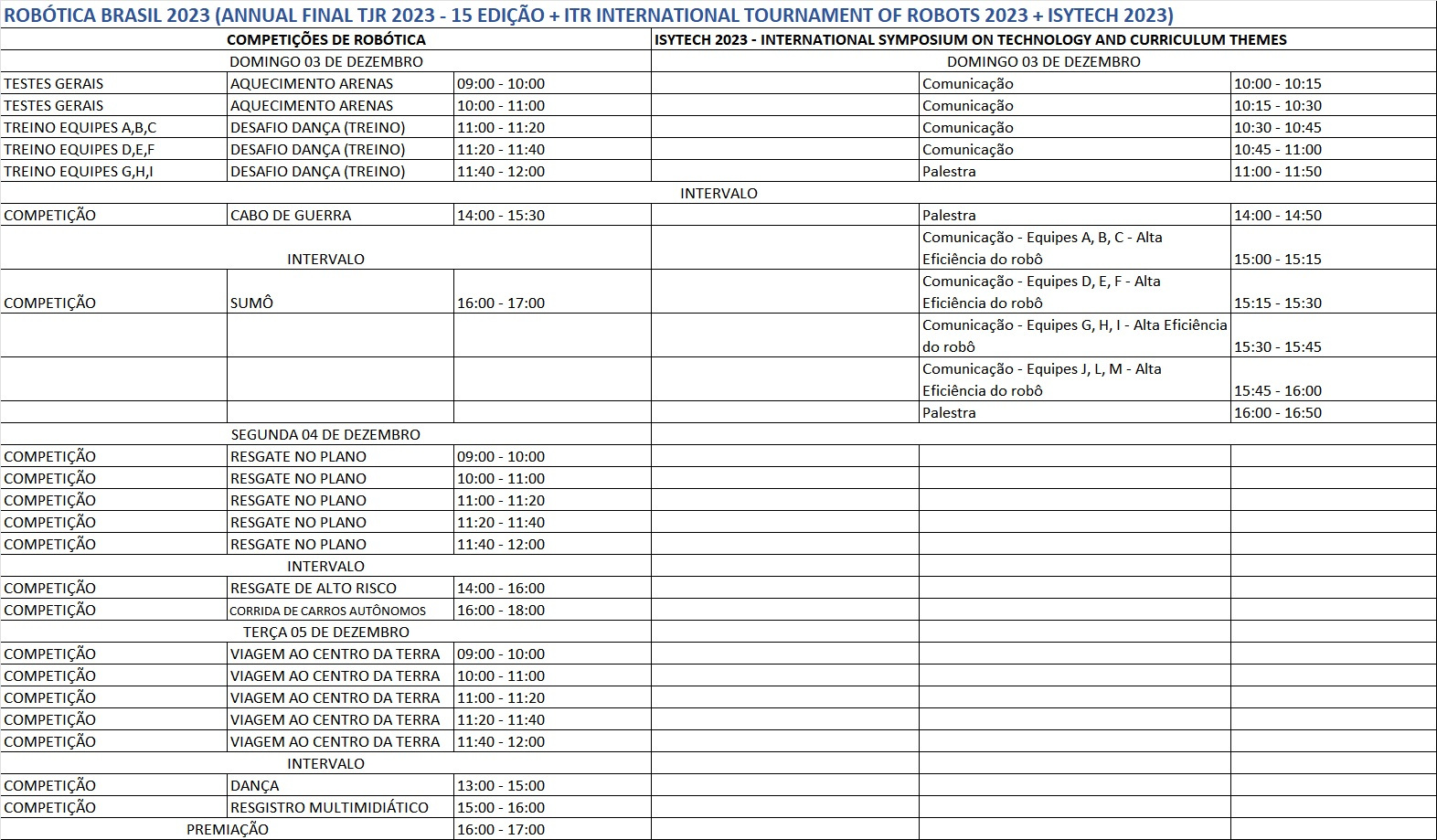 The II ISYTECH and TJR Annual Final 2023 // ITR International Tournament of Robots 2023 will take place from December 3 to 5, 2023, at Convention Center Novotel, São Paulo, Brazil. Nearby there are hotels prepared to serve teachers, students and their families, such as as the event convention center hotel itself: Novotel Center Norte.